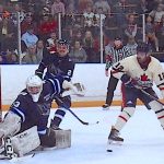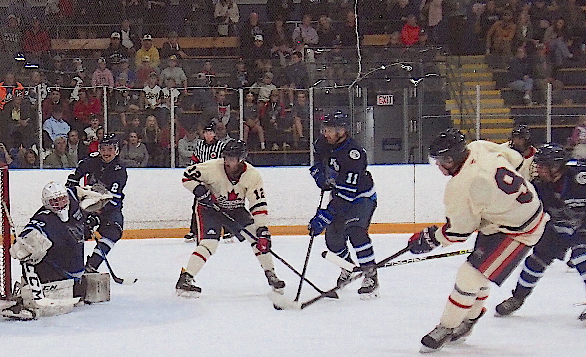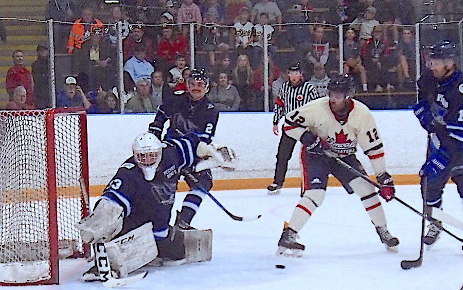 What followed was a highly entertaining 3-on-3 overtime period, as the two clubs traded chances, culminating in the dying seconds with Peicheff making a spectacular point blank save on an Elmvale player who was alone in front.