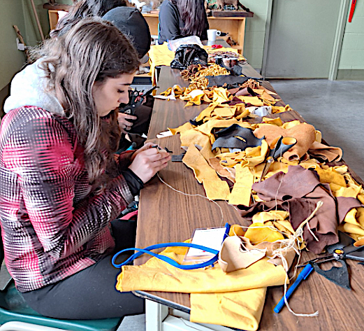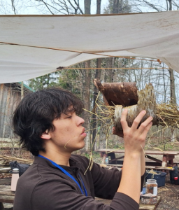 A variety of outdoor and indoor workshops were provided for students to choose from, including Bannock making, porcupine quill harvesting, black ash basket creation, fire making, drumming, leather pouch making, guided walks, and powwow dance demonstrations and lessons. Other special highlights were a collaborative ribbon skirt making activity, which brought together a diverse selection of previously created student designs for final assembly, and a chance to play language bingo during lunch.