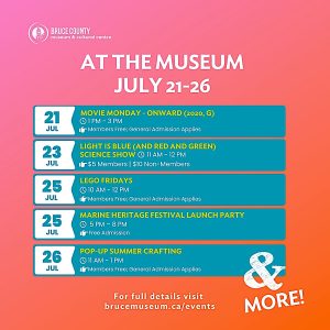 A&EFeaturedFeaturesCommunityHeritage Bruce County Museum & Cultural Centre: Weekly Summer FUN By Sandy Lindsay - July 21, 2025 Facebook Twitter Google+ Pinterest WhatsApp Linkedin Email Print Summer FUN at the Bruce County Museum & Cultural Centre >>> For larger view, click on image