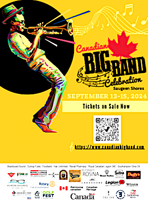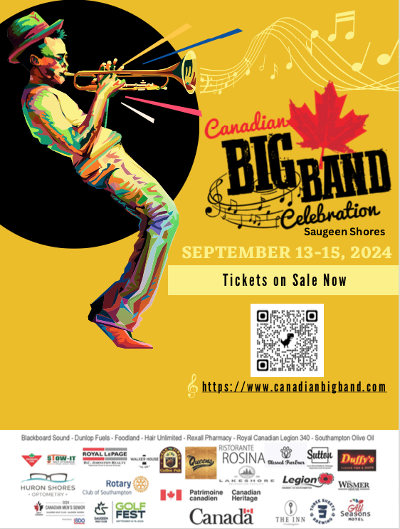 The evening begins with the talented musicians from Port Elgin Saugeen District Senior School Royals Big Band and their director Kerrie Lynne Matheson-Boys. The Band recently won FIRST place in the Ontario Music Festivals Association provincial band festival performing an arrangement of Jimmy Van Heusen and Sammy Cahn’s “Come Fly With Me”.