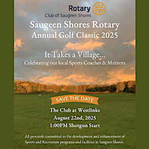 August 22: Saugeen Shores Rotary Annual Golf Classic - Celebrating local Spots Coaches & Mentors The Club at Westlinks 1:00 p.m. Shotgun Start - More Details click on poster