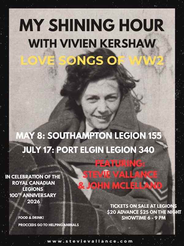 Vallance debuted her current musical-play MY SHINING HOUR with Vivien Kershaw, Love Songs of WW2 to full-houses on Victory Day 2025, at the Southampton Legion, and in November for Remembrance Day 2025, presented by the Bruce Playhouse, at Southampton’s Town Hall.