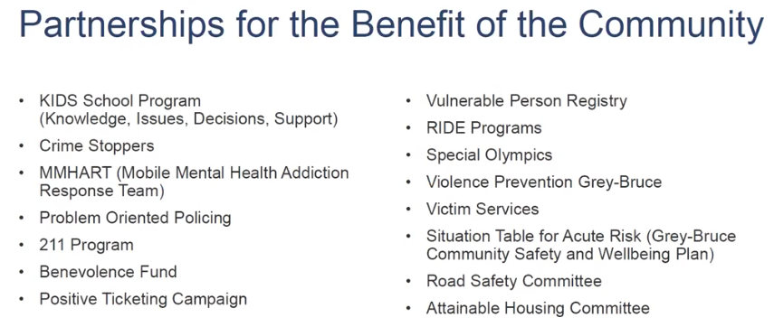 One of the key presentations was from Police Services Board, John Woodley Vice-Chair and Chief Kevin Zettel. The Police Serve is required to “… provide adequate and effective police services ad detailed in the Community and Policing Services Act”.