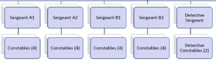 Under the platoon style of policing there are four sergeants with four constables under each who are the “boots on the ground” policing.