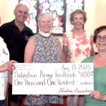 (L) Karin Friis of Salvation Food Bank Port Elgin accepts donation from Christine Saunders